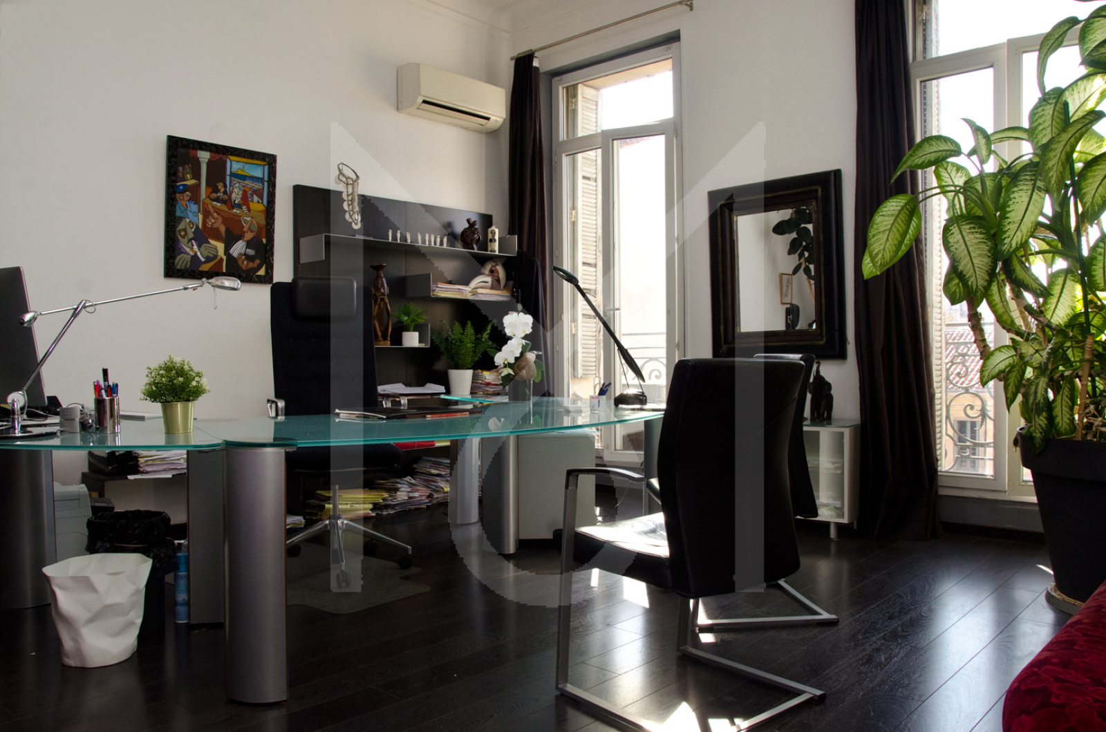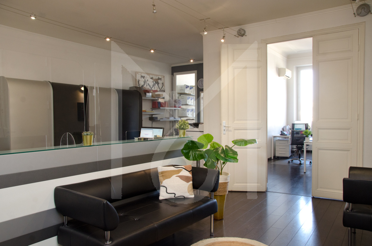Sylvain, votre agent Mûre Transaction vous propose à nouveau à la vente EN EXCLUSIVITE, une belle surface au sol de bureaux de 162,5 m² (161,3 m² loi Carrez) dans le quartier de la Préfecture. Situés dans un immeuble bourgeois à moins de 200m du métro Estrangin et du Cours Pierre Puget, vos futurs bureaux s'élèvent au 4ème étage sur 5 (avec ascenceur). Imaginez la vue dégagée offrant une belle luminosité de part et d'autre de cet appartement traversant; Imaginez aussi le soir, la vue sur la Préfecture et Notre Dame de la Garde éclairées. Cet appartement en étoile s'ouvre sur un espace réception/accueil de 42m² desservant 6 bureaux cloisonnés: 2 grands bureaux de 21 et de 24m² en sa façade rue (Sud-Est) et 1 autre sur cour de 25m² ainsi que 3 trois autres bureaux de 9 à 12m², une grande salle d'archivage de près de 10m² (pièce noire), une kitchenette et un WC. Le double vitrage, la climatisation réversible sur l'ensemble de la surface lui confèrent une excellente performance énergétique (DPE: A) Entièrement rénové avec goût, mélange de notes contemporaines aux codes des immeubles bourgeois (cheminée, moulures, hauteur sous plafond de 3,5m) vous vous offrez ainsi qu'à vos collaborateurs et clients un surperbe outil de travail qui ne nécessite aucuns travaux. Une cave de 33 m² vient compléter ce bien, idéale pour augmenter la capacité d'archivage. Qu'elle soit libérale ou tertiaire, venez développer votre activité sur un secteur PREMIUM. Investisseurs : bon rendement locatif. Taxe foncière 2024 : 3352€. Charges mensuelles : 189€. Honoraires à charge du VENDEUR. Sylvain CORTOYS EI RSAC 852233774. Contact : 06 16 28 07 32.
